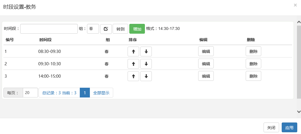 时间段采用24小时制,如果时间段太多可以设置分组管理。默认的分组有“春”、“夏”、“秋”、“冬”、“其他”,;你可以点击旁边的【组管理】来修改或再自定义。