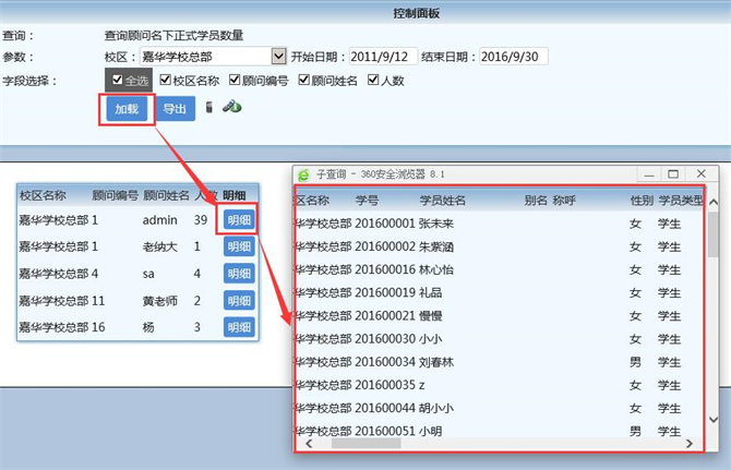 一、“转正”只是录入正式学员信息的一个快捷方式,点击“转正”后,需要补充学员信息,点击提交才能报名成功。 二、如果您不具备“转正”权限,而拥有正式报名权限,可直接进入(报名客服-学员报名)录入学员信息,如果寻找到匹配的手机号码、邮箱、QQ等咨询信息,系统会自动将潜在咨询信息处理成“成功”状态。   2.添加查询应用。【分析】-【查询管理】-【应用市场】找到“ 查询顾问名下正式学员数量 ”点绿色下载箭头添加查询应用。   3.对查询进行授权,由指定权限的人员进行查看及出现位置设置。      access版本 主查询: Select Student.SchoolName as 校区名称, Student.ConsultantID as 顾问编号, Student.ConsultantName as 顾问姓名, count(Student.StudentID) as 人数, Student.ConsultantID as ShowKey, Student.SchoolName as ShowKey1 from Student where SchoolID in ( {@SchoolID:校区} ) and Student.DateAndTime >= {@StartDate:开始日期} and Student.DateAndTime <= {@EndDate:结束日期} and Student.ConsultantID <> NULL group by Student.SchoolName,Student.ConsultantID,Student.ConsultantName