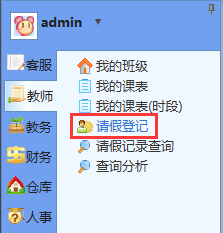 当学员因故不能来校上课,而提前给老师或教务人员请假时,需要及时录入系统,办理请假手续,系统才会自动把其当天的出勤状态更改为“请假”。