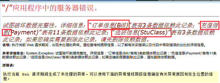 删除信息时如果出现类似“**表有数据依赖此记录”的错误提示,不要惊慌,请仔细阅读上面的文字内容,分析一下删除关联数据即可,如果记录的“编辑”或“删除”为灰色,那么要考虑是否权限不足或不在相应管理模块,比如充值、订单等财务信息的删除一般在“财务模块”,如果在“教务模块”是无法删除和编辑此类信息的;同样选班、异动、考勤等信息是“教务”职责范围,财务模块也是没有管理权限的;这也是本系统的优点,分工明确,各司其职。