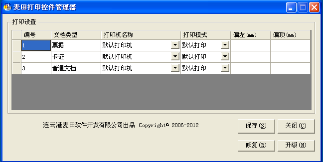 MTcnsoft Training提供了完善的客户端打印控件设置功能,在客户端安装好打印控件以后,可以根据【麦田打印控件管理器】来设置打印文档所要使用的打印机名称及打印模式。