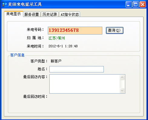 当有来电时首先显示号码归属地,然后显示是否有潜在学员或正式学员,并且显示最后一次回访信息。