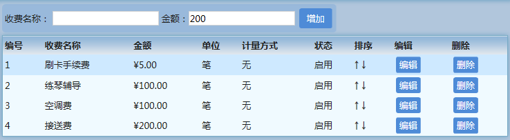 【系统】→【收费项设置】,这里可以设置其他收费项,如:接送费、空调费、报名费等。如下图: